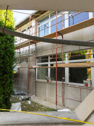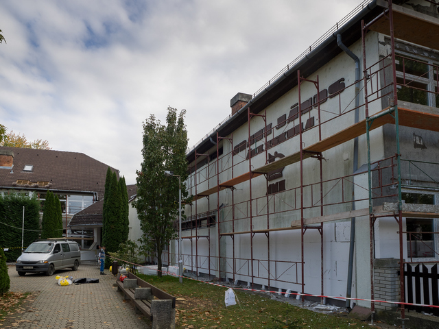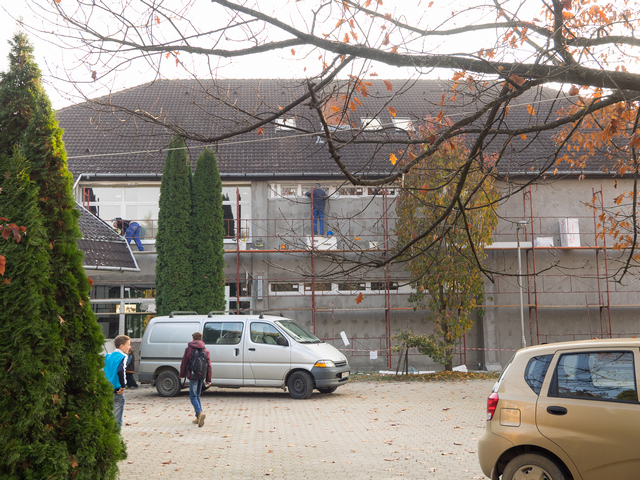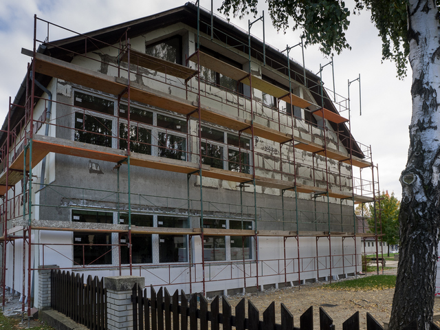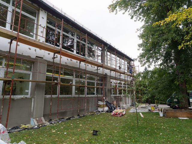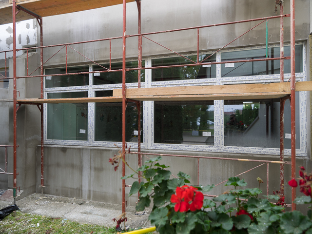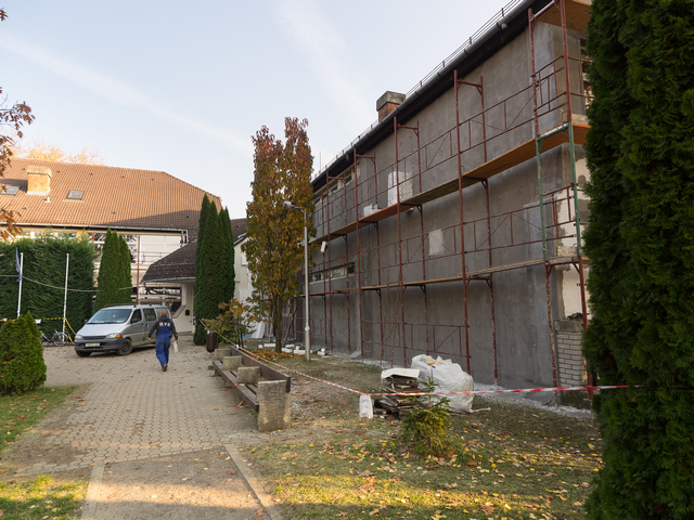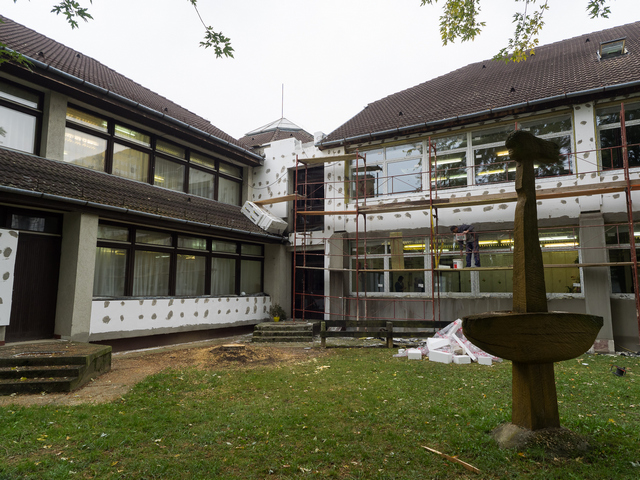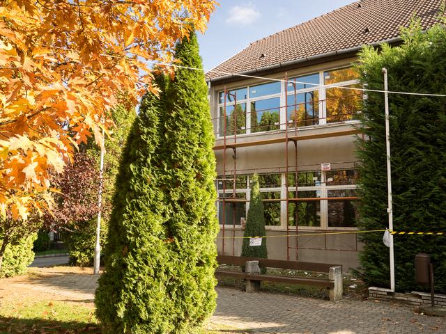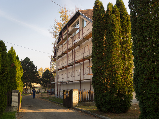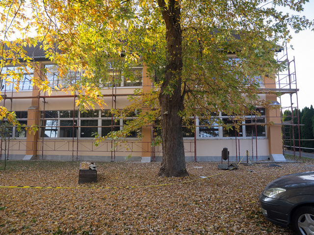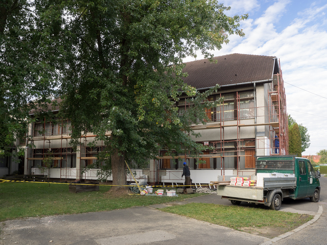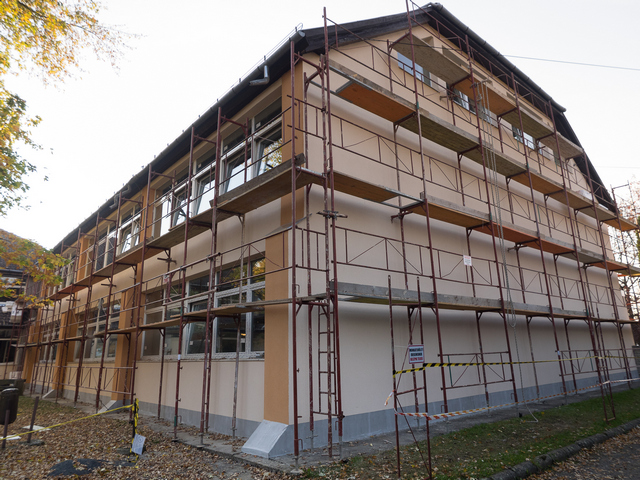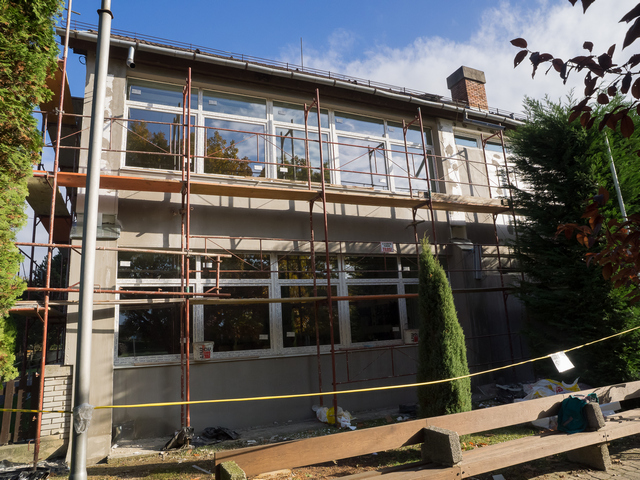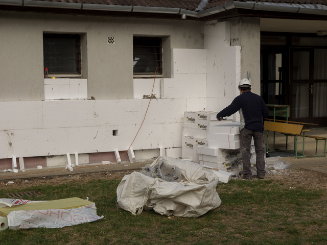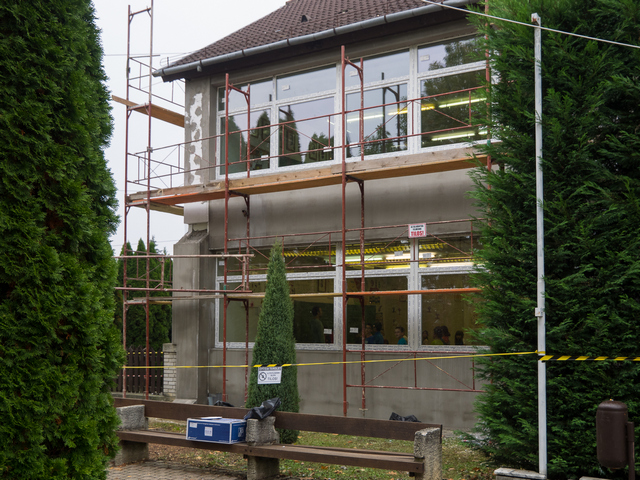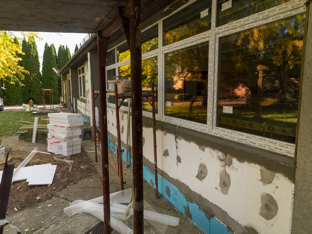 A beruházás megvalósítására közbeszerzési eljárás keretében választották ki a kivitelezőt. A nyertes lenti LE-KO Építőipari Kft. a kivitelezést szeptember közepén, az épület felállványozását követően a homlokzati szigetelési munkákkal kezdte meg, amellyel párhuzamosan a zárófödém hőszigetelése is megtörtént.